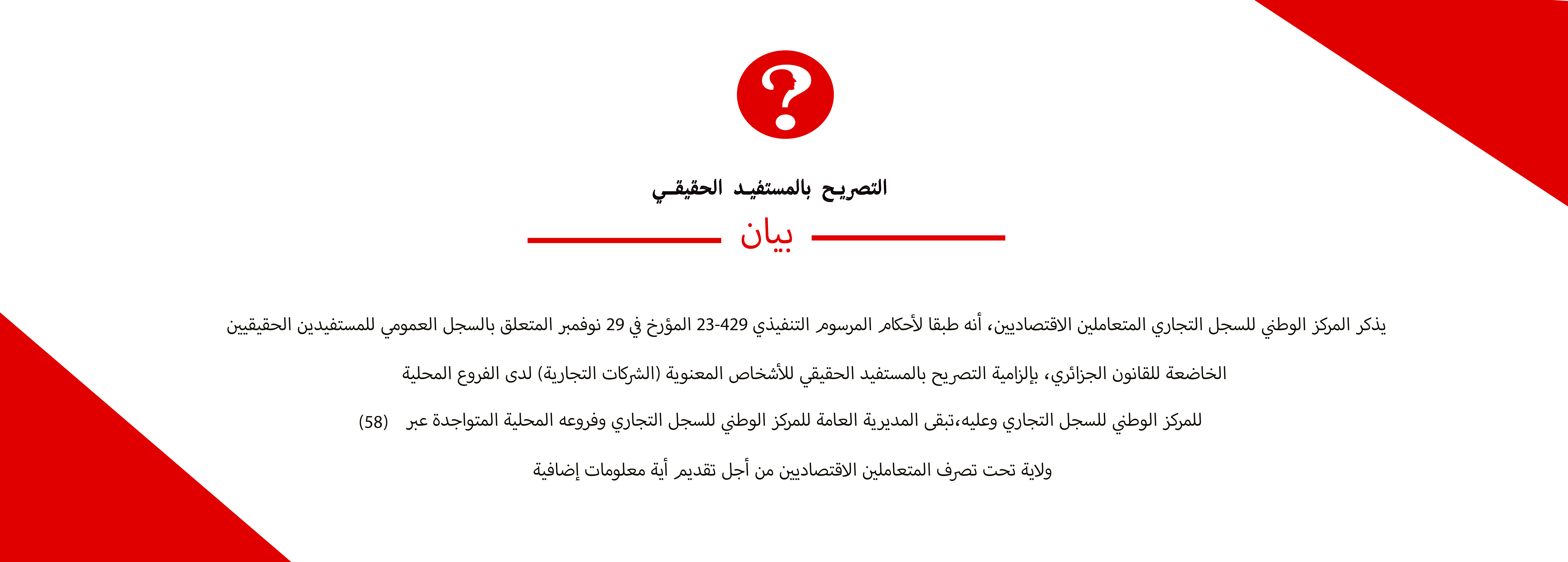 فضاء مخصص للتسجيل عبر الخطالتصريح بالمستفيد الحقيقي